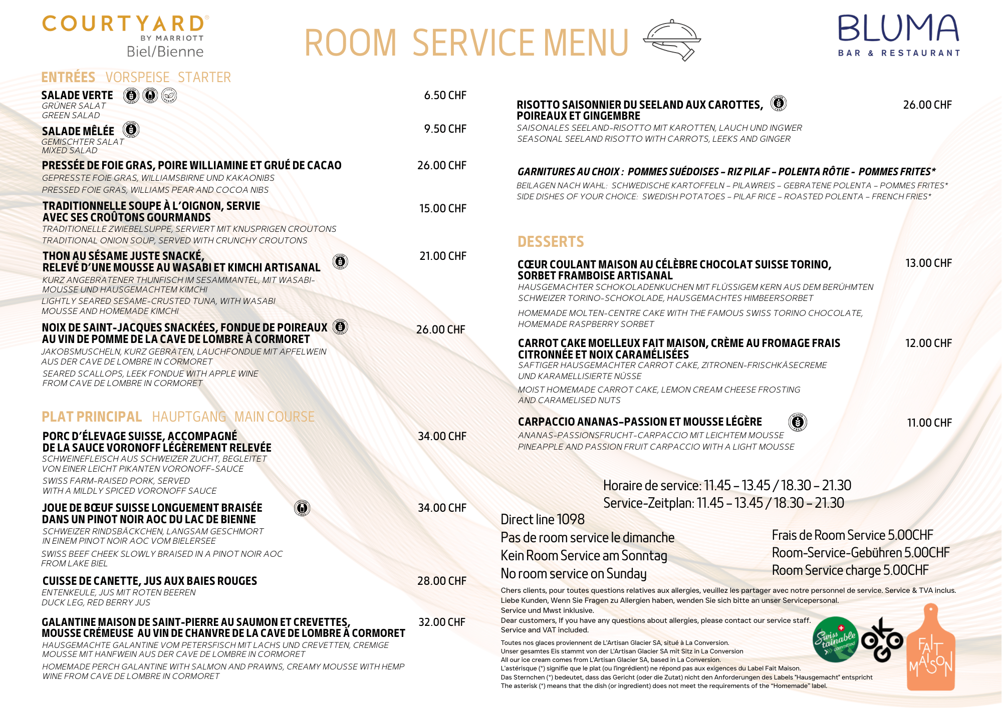 Room service Menu (in room)